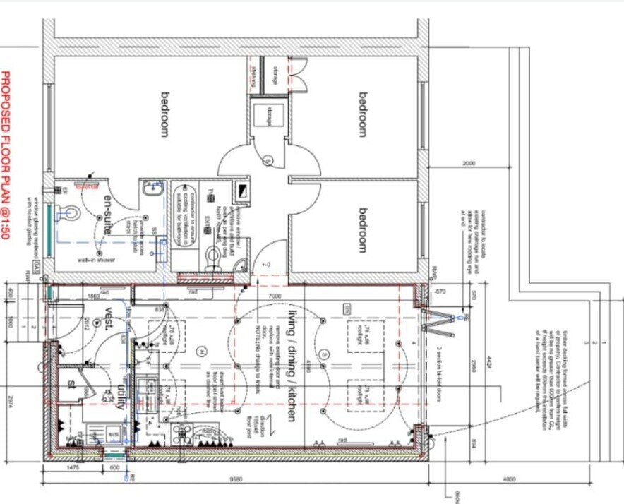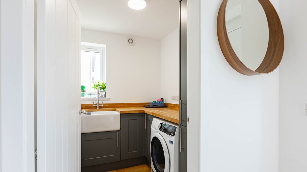 Utility room, open plan livingroom dining room and kitchen, 3 bedrooms, 1 ensuite and a family bathroom