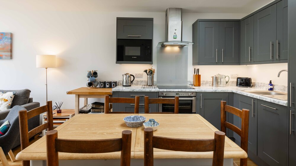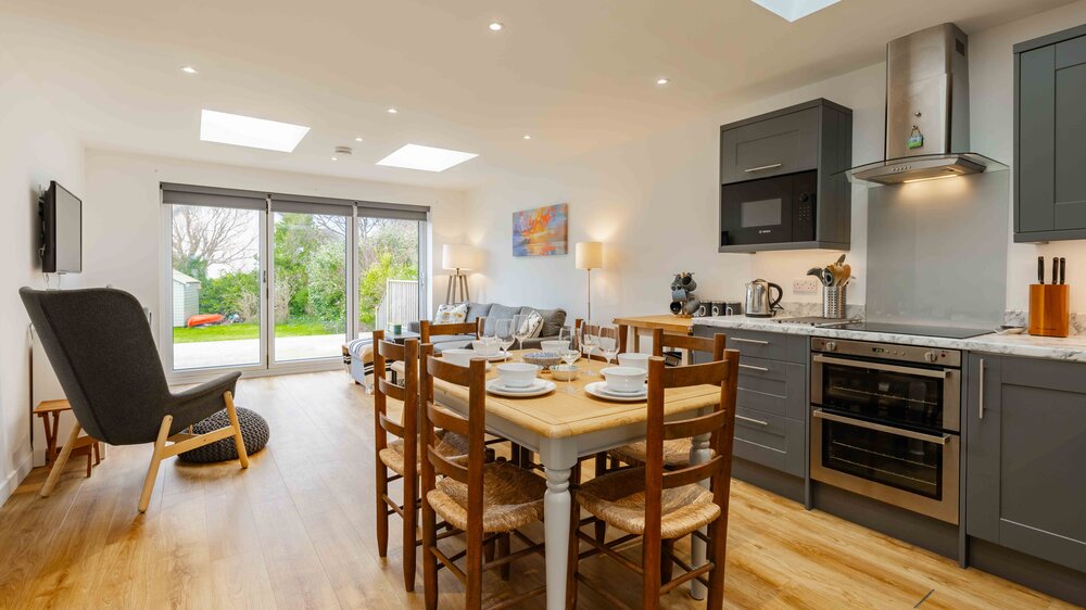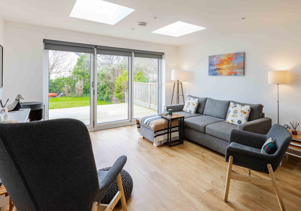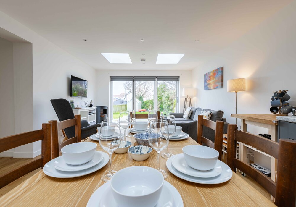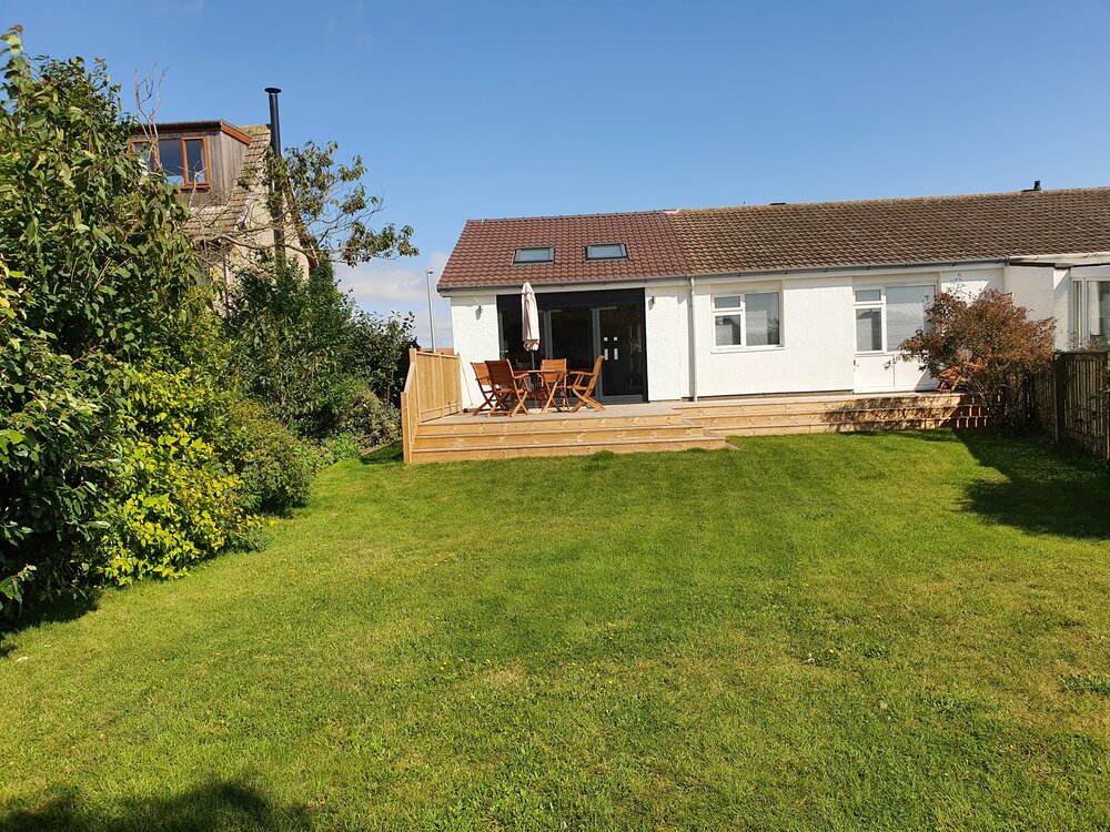 This modern semidetached property has been recently extended and refurbished. With an open plan living and kitchen/dining area which is bright and spacious, the patio doors open onto an enclosed garden making it perfect for a family holiday. There is a master super king bedroom with en-suite bathroom, family bathroom with bath, double bedroom, twin room and utility room area to the front of the house. The garden is accessed from the raised wooden decking area which has outdoor furniture and is perfect for al fresco dining.