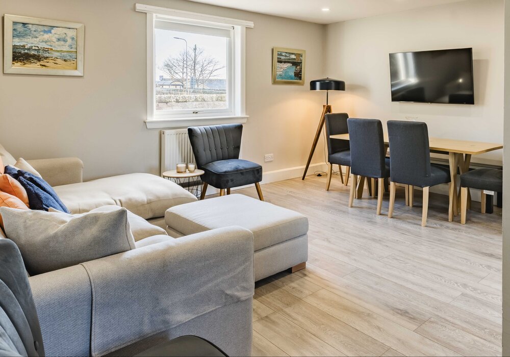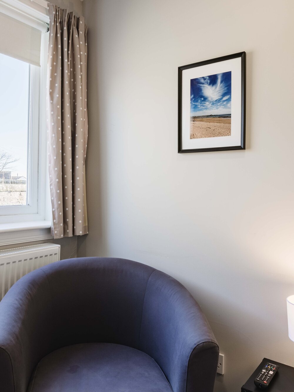 1 North Street is a modern flat built in the 1990, The owners have recently refurbished the flat to allow for a second bathroom which gives the master bedroom an en suite. It is in a perfect location just off Elie High street allowing for short walk to Ruby Bay, the beach and playpark at Woodside Road . The golf courses are close at hand too. There is a small courtyard which gives you an outside space to relax in with your holiday gin and tonic.