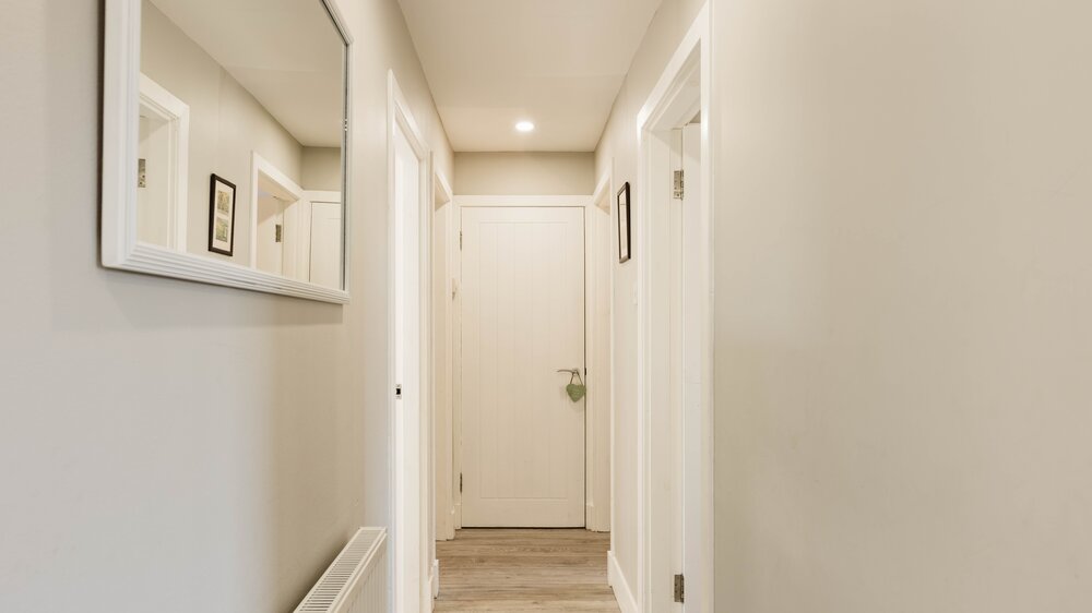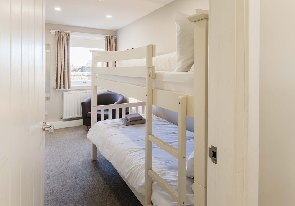 Hallway leads into an open plan kitchen, dining room and living area. Twin bedroom, bunk bedroom and ensuite master bedroom.